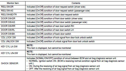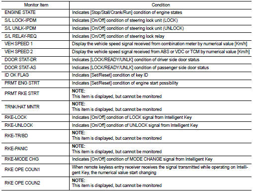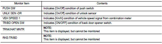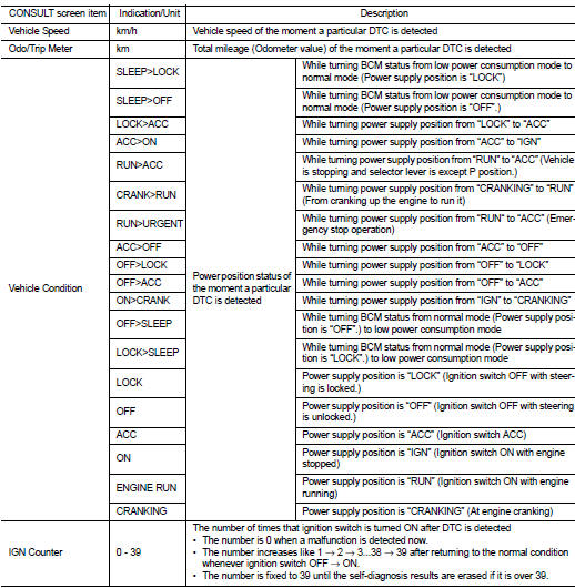 The BCM records the following vehicle condition at the time a particular DTC is detected, and displays on CONSULT-III.