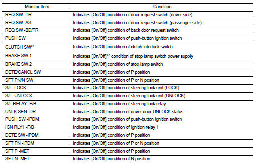 *2: OFF is displayed when brake pedal is depressed while brake switch power supply is OFF.