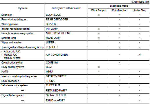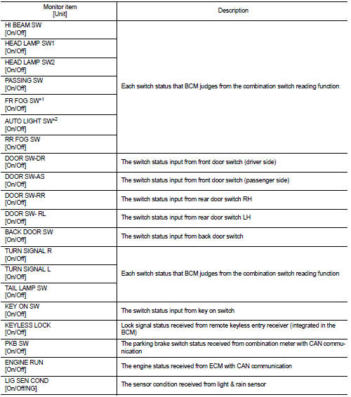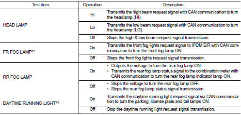 *1: For models without front fog lamp, this item is displayed but active test is not operated.