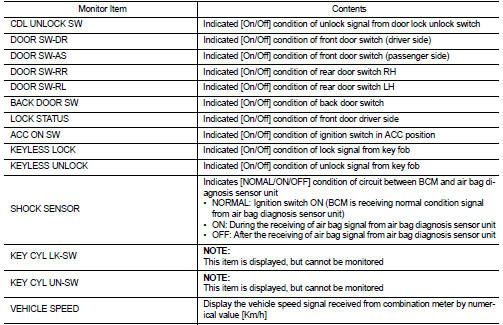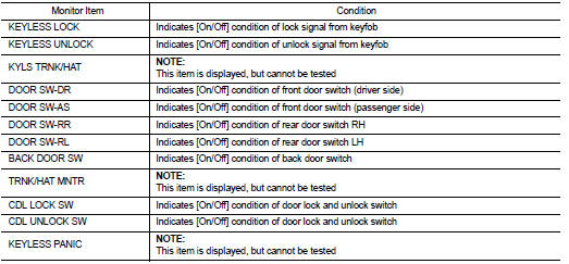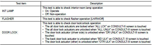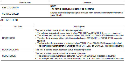 DOOR LOCK : CONSULT-III Function (BCM - DOOR LOCK) (Without Super Lock)