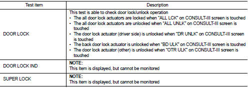 DOOR LOCK : CONSULT-III Function (BCM - DOOR LOCK) (With Super Lock)