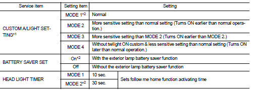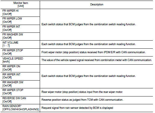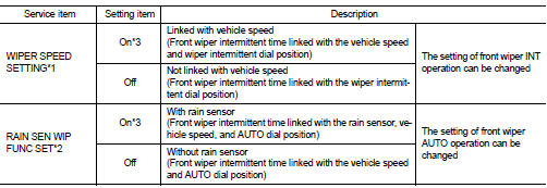 *1: The item is indicated, but not operated on model with rain sensor *2: The item is indicated, but not operated on model without rain sensor *3: Factory setting
