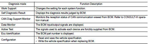 CONSULT-III performs the following functions via CAN communication with BCM.