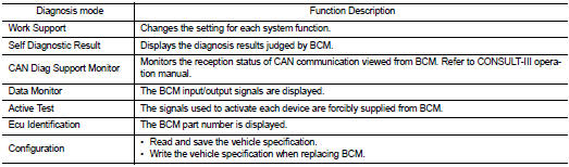 CONSULT-III performs the following functions via CAN communication with BCM.
