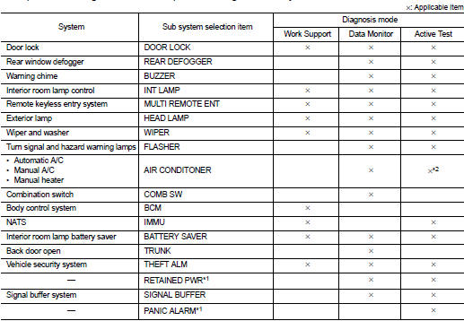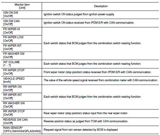*: The item is displayed but is not monitored on model without rain sensor ACTIVE TEST