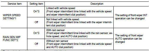 *1: The item is indicated, but not operated on model with rain sensor *2: The item is indicated, but not operated on model without rain sensor *3: Factory setting