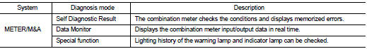 CONSULT-III can perform the following diagnosis modes via CAN communication and the combination meter.