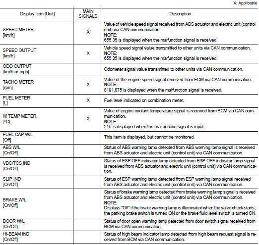 Nissan Juke Service and Repair Manual : Diagnosis system (combination meter)