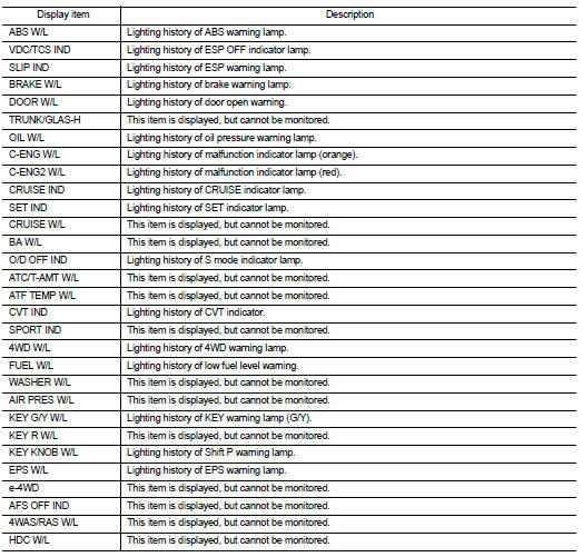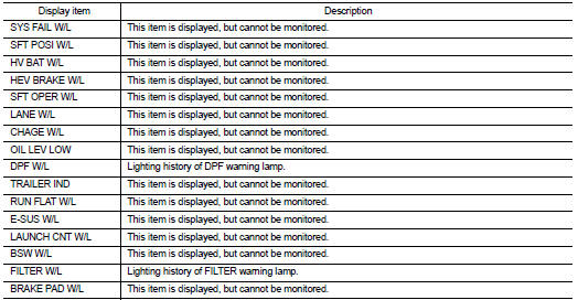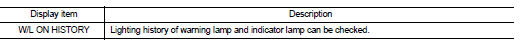 • “W/L ON HISTORY” indicates the “TIME” when the warning/ indicator lamp is turned on.