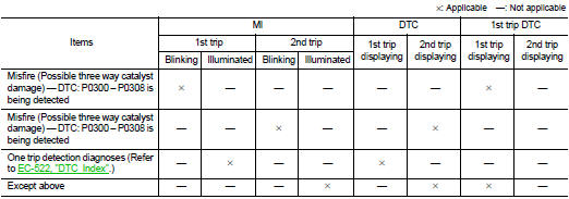 *1: When the same malfunction is detected in two consecutive trips, MI will light up.