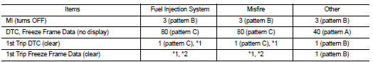 *4: The DTC and the freeze frame data will not be displayed any longer after vehicle is driven 40 times (pattern A) without the same malfunction.