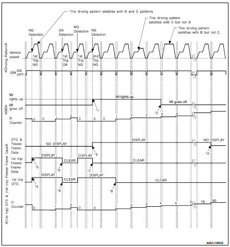*3: When the same malfunction is detected in two consecutive trips, the DTC and the freeze frame data will be stored in ECM.