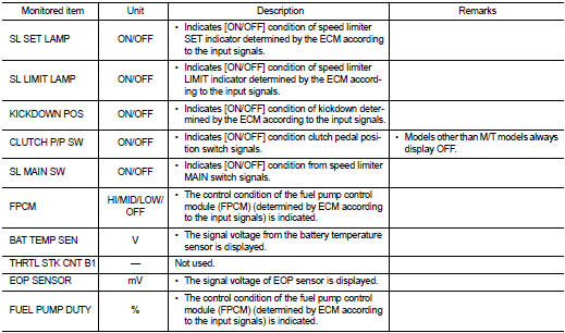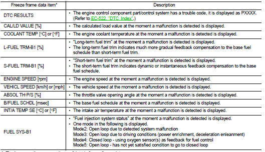 *: The items are the same as those of 1st trip freeze frame data.
