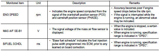 Regarding items of DTC and 1st trip DTC, refer to EC-522, "DTC Index".