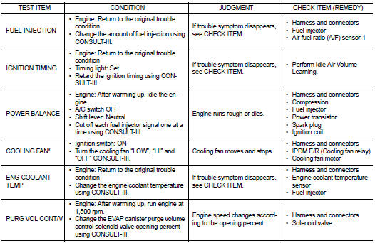 *: Leaving cooling fan OFF with CONSULT-III while engine is running may cause the engine to overheat.