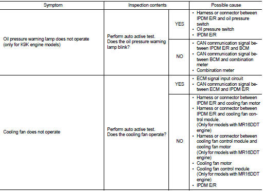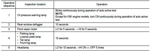 *: Except for K9K engine models, oil pressure warning lamp turn ON when auto active test start.