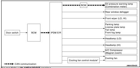 • IPDM E/R starts the auto active test with the door switch signals transmitted by BCM via CAN communication.