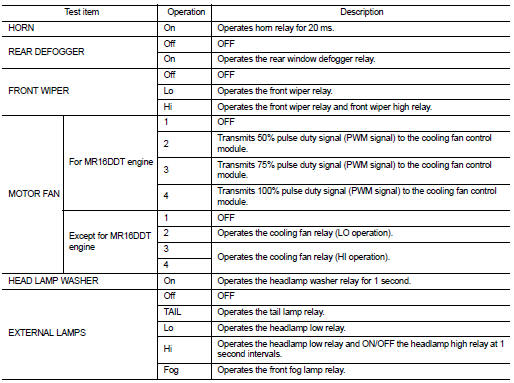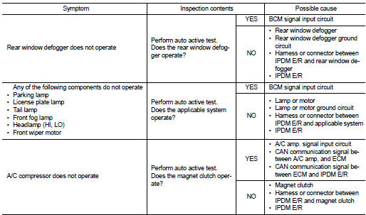 • The auto active test facilitates troubleshooting if any systems controlled by IPDM E/R cannot be operated.