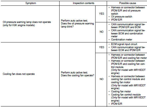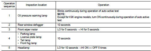 *: Except for K9K engine models, oil pressure warning lamp turn ON when auto active test start.