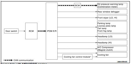 • IPDM E/R starts the auto active test with the door switch signals transmitted by BCM via CAN communication.
