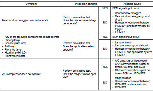 • The auto active test facilitates troubleshooting if any systems controlled by IPDM E/R cannot be operated.