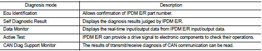 CONSULT-III performs the following functions via CAN communication with IPDM E/R.