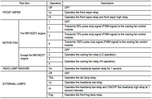 In auto active test mode, the IPDM E/R sends a drive signal to the following