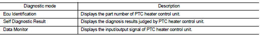 Diagnosis result that is judged by PTC heater control unit. can be checked. Refer to HAC-267, "DTC Index".