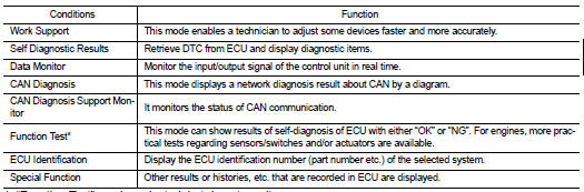 CONSULT-III can display each diagnostic item using the diagnostic test modes shown below.
