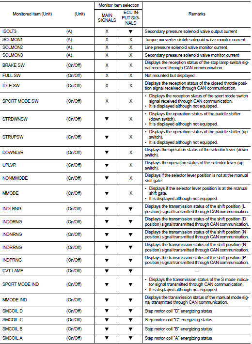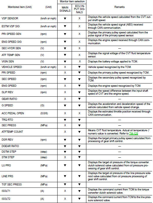 *1: Means CVT fluid temperature. Convert numerical values for actual fluid