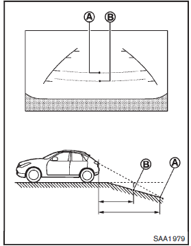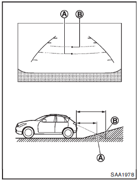 When backing up the vehicle up a hill, the distance guide lines and the vehicle width guide lines are shown closer than the actual distance.
