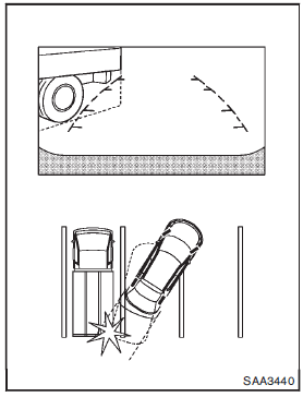 The vehicle may seem to nearly clear the object in the display. However, the vehicle may hit the object if it projects over the actual backing up course.