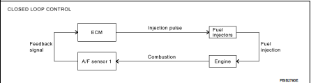 The mixture ratio feedback control system monitors the mixture ratio signal transmitted from A/F sensor 1.