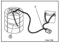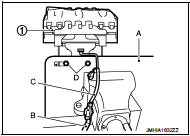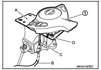 2. Using wire (D), secure driver air bag module (1) to air bag module bracket (SST: KV99105300) (A) at two places.