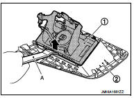 1. Remove the front passenger air bag module (1) from lid (2) with remover tool (A).