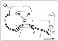 3. Insert two bolts through air bag module bracket and front side air bag module (1) upper side holes, and fix them with two nuts (C).