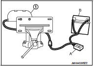 3. Connect deployment tool (SST: KV99106400) (A) and deployment tool adapter (SST: KV99110500) (B) to the inflator (1).