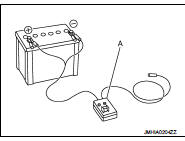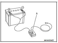4. Connect red clip of deployment tool (A) to battery positive terminal and black clip to negative terminal.