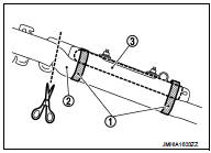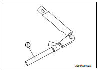 1. Remove lap pre-tensioner (1). Refer to SB-5, "SEAT BELT RETRACTOR : Removal and Installation".