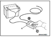 3. Connect red clip of deployment tool to battery positive terminal and black clip to negative terminal (C).