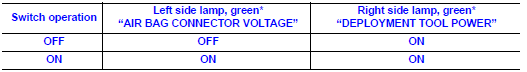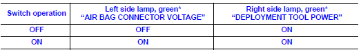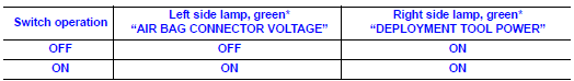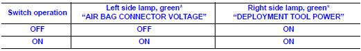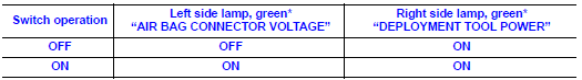 Air Bag Deployment Tool Lamp Illumination Chart (Battery Connected)