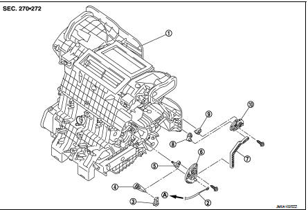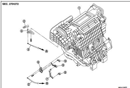 1. Disconnect intake door cable from A/C control. Refer to HAC-308, "Exploded View".