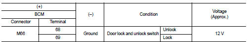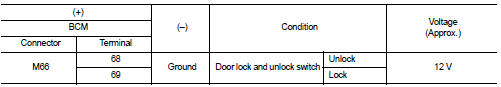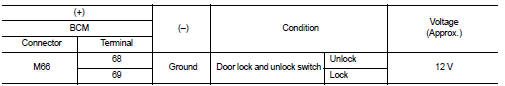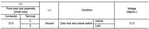 3. Check voltage between front door lock assembly (driver side) harness connector and ground.