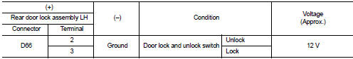 3. Check voltage between rear door lock assembly LH harness connector and ground.