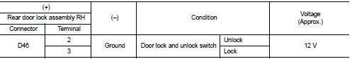 3. Check voltage between rear door lock assembly RH harness connector and ground.