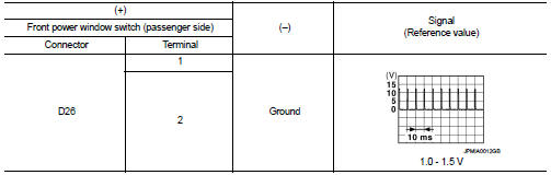 3. Check signal between front power window switch (passenger side) harness connector and ground using oscilloscope.
