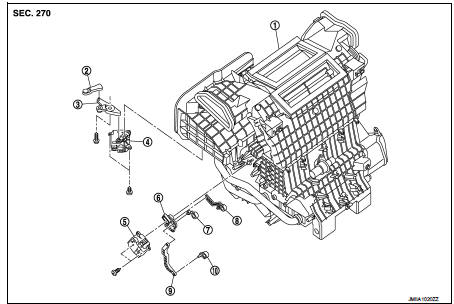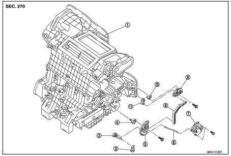 4. Remove fixing screws (A), and then remove air mix door motor (1) from A/C unit assembly.