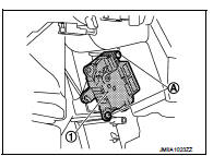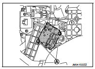 4. Remove fixing screws (A), and then remove intake door motor (1) from A/C unit assembly.
