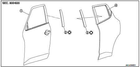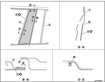 • Paint grain or dust on mounting surface of door sash tape may spoil exterior appearance if it remains. Clean the mounting surface and check that no paint grain or dust remains, before starting the operation.