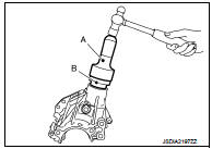 10. Tighten lock nut within the specified torque range with a preload gauge (A) (SST: ST3127S000) so that the drive pinion bearing preload is within standard.